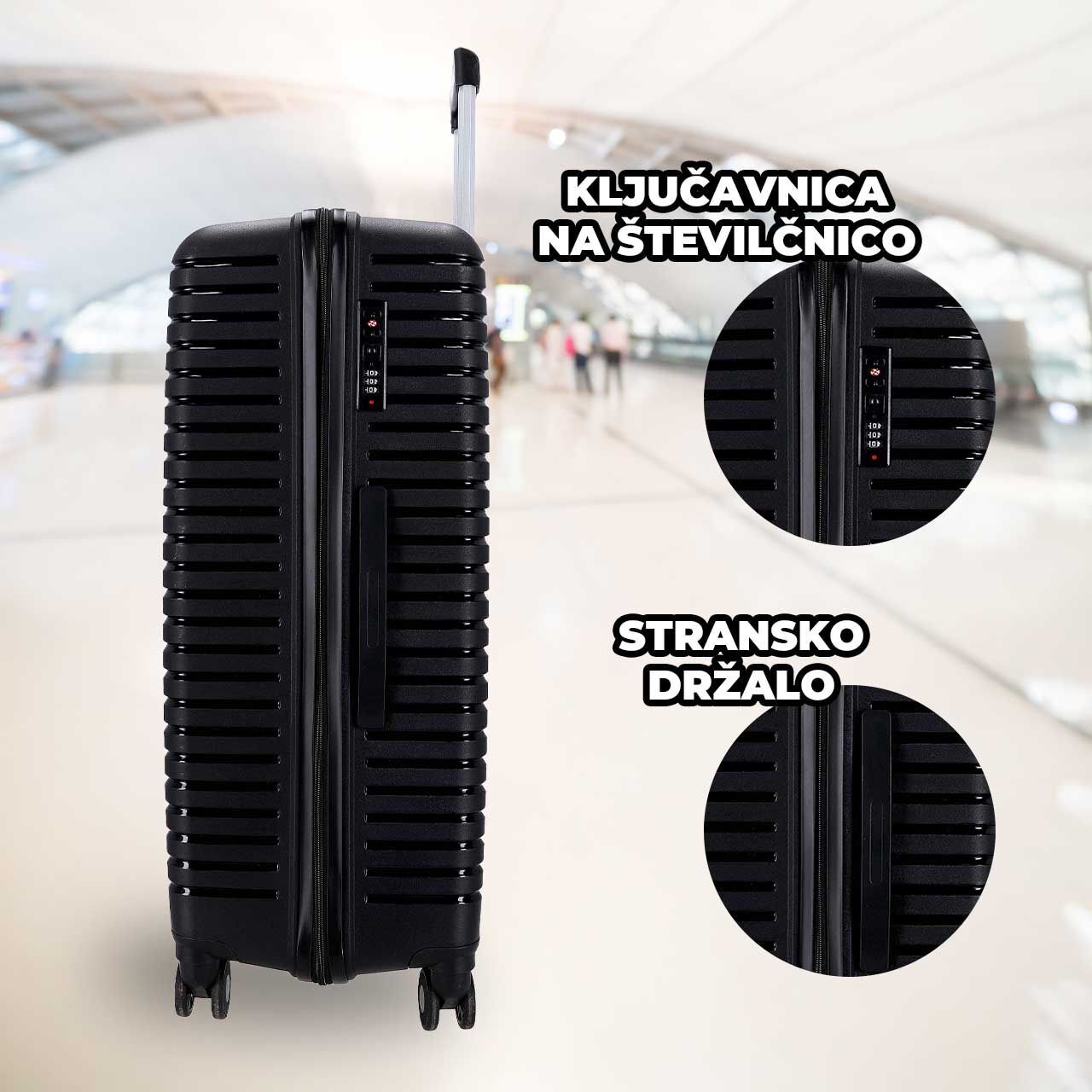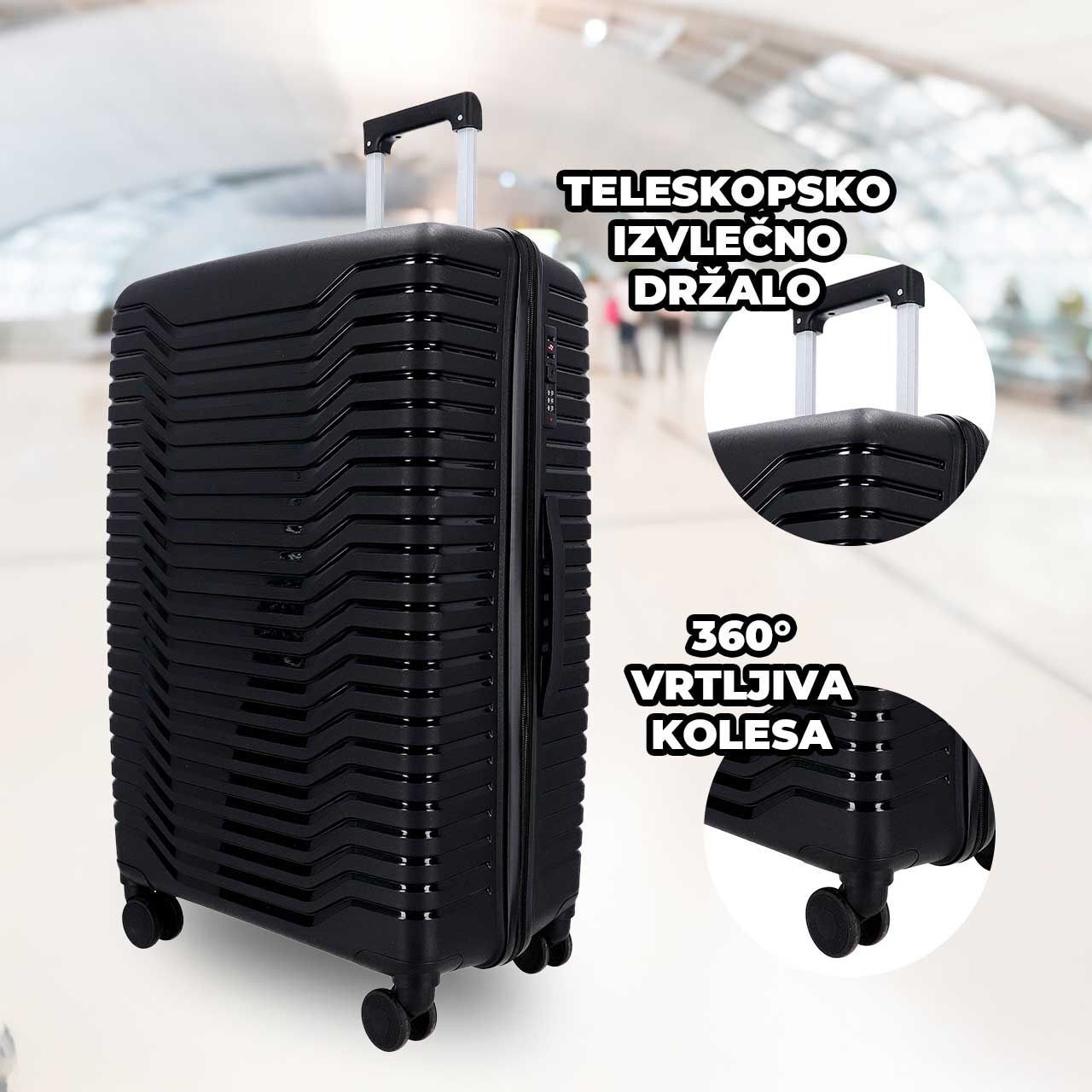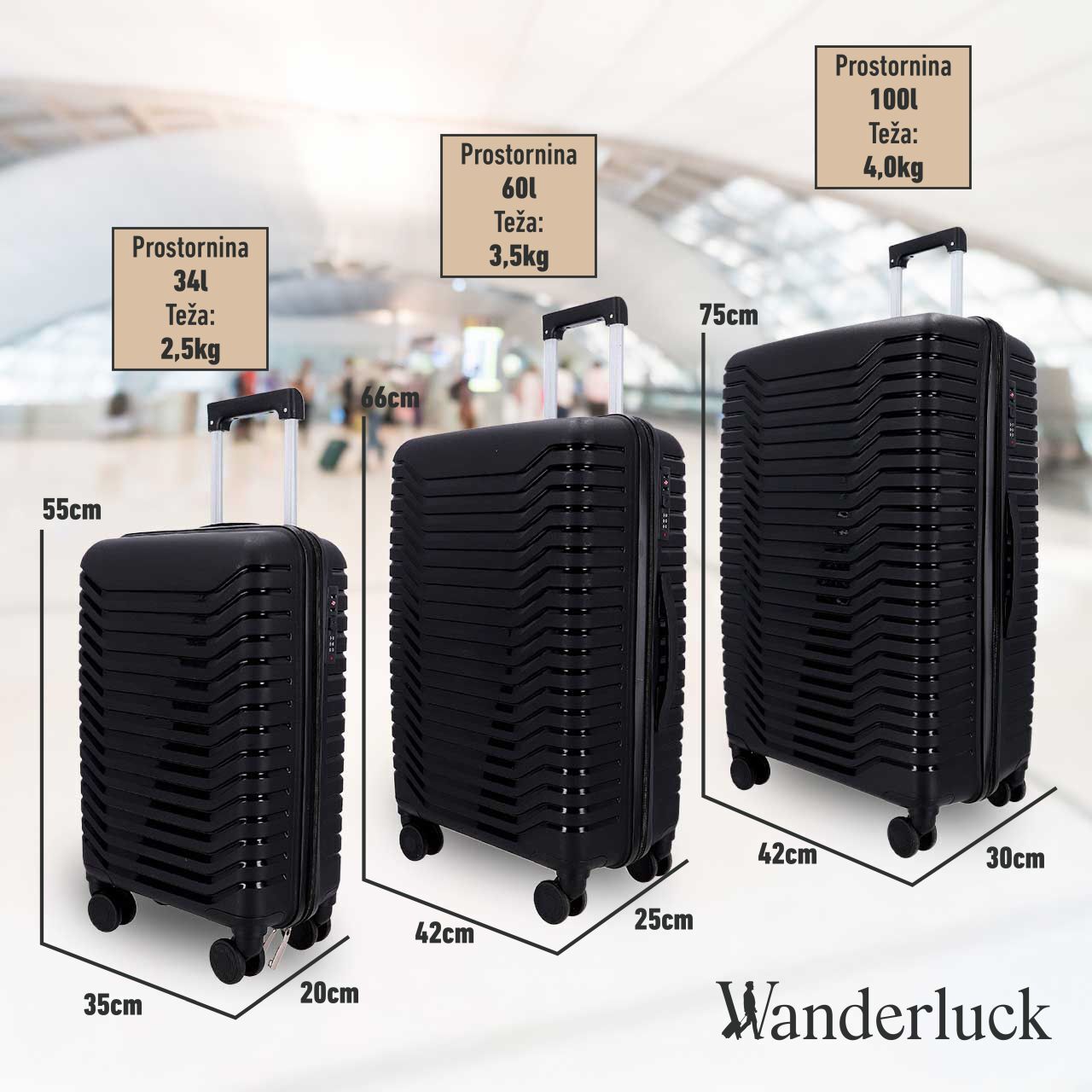 3-delni set potovalnih kovčkov WANDERLUCK - črni, velik, srednji, mali