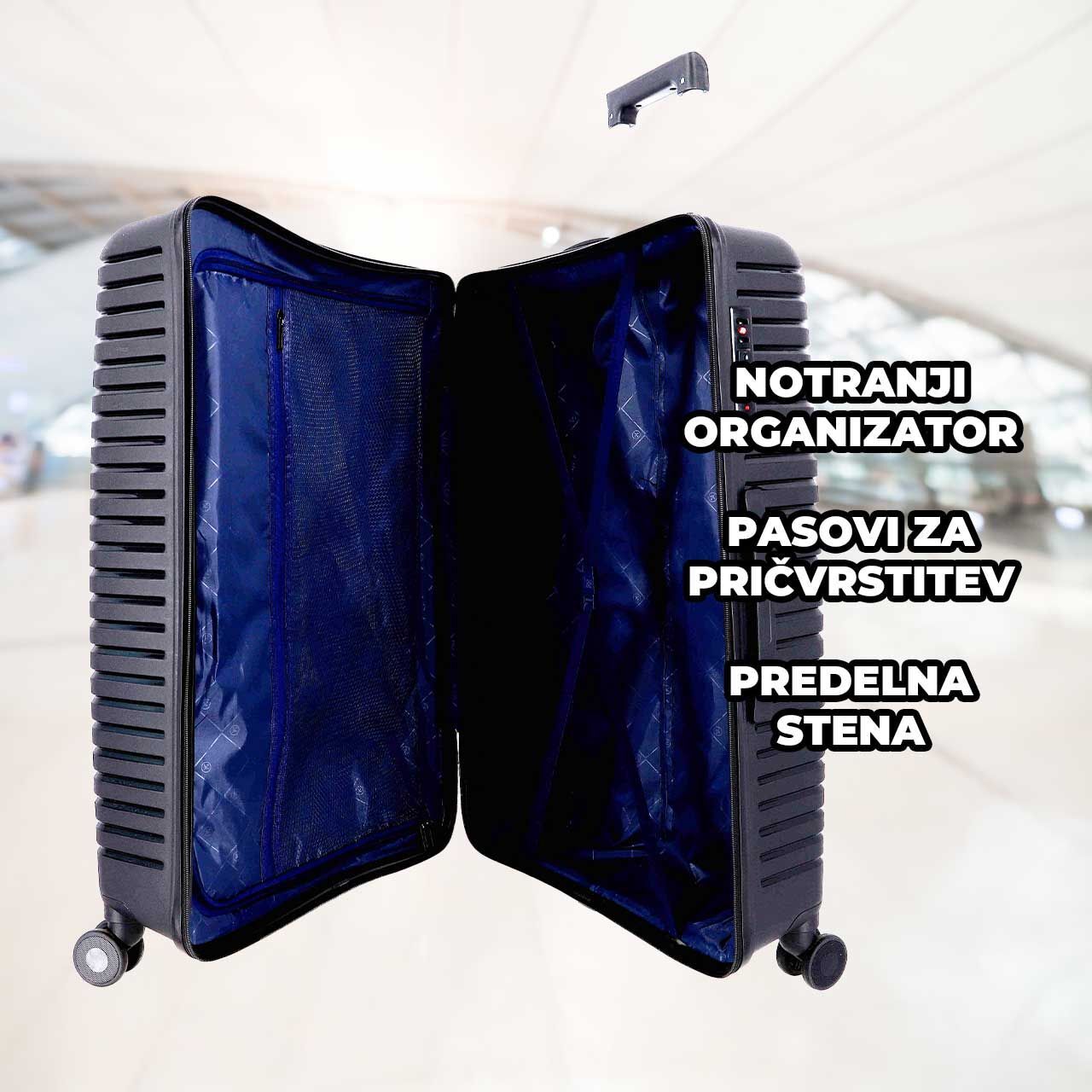 • Pametna notranjost - razdelki in trakovi za urejeno pakiranje.