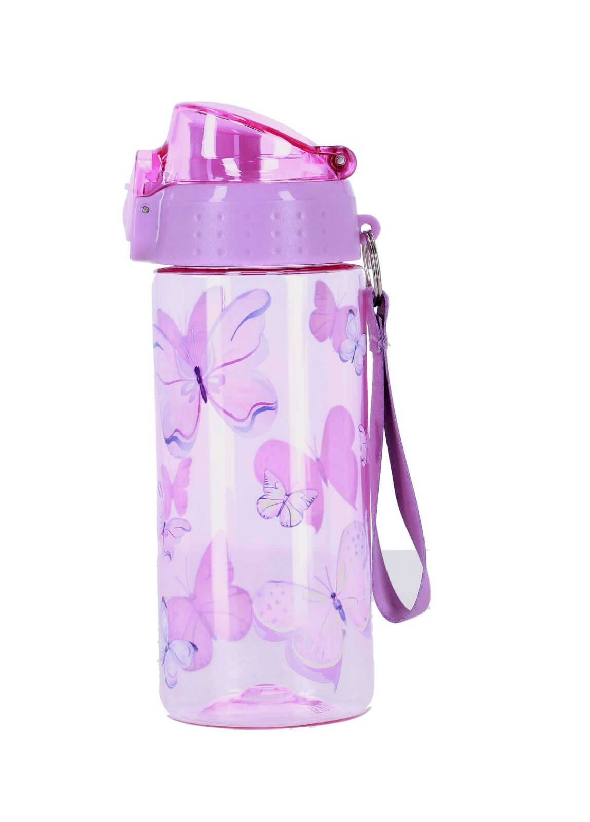 Bidon s kapaciteto 500 ml je popoln za šolo, športne aktivnosti ali vsakodnevno uporabo. Njegova lahka in vzdržljiva zasnova zagotavlja udobno in varno uporabo, kjerkoli ste. Brez BPA material poskrbi za zdravje, medtem ko motiv metuljev prinaša veselje in barvitost.