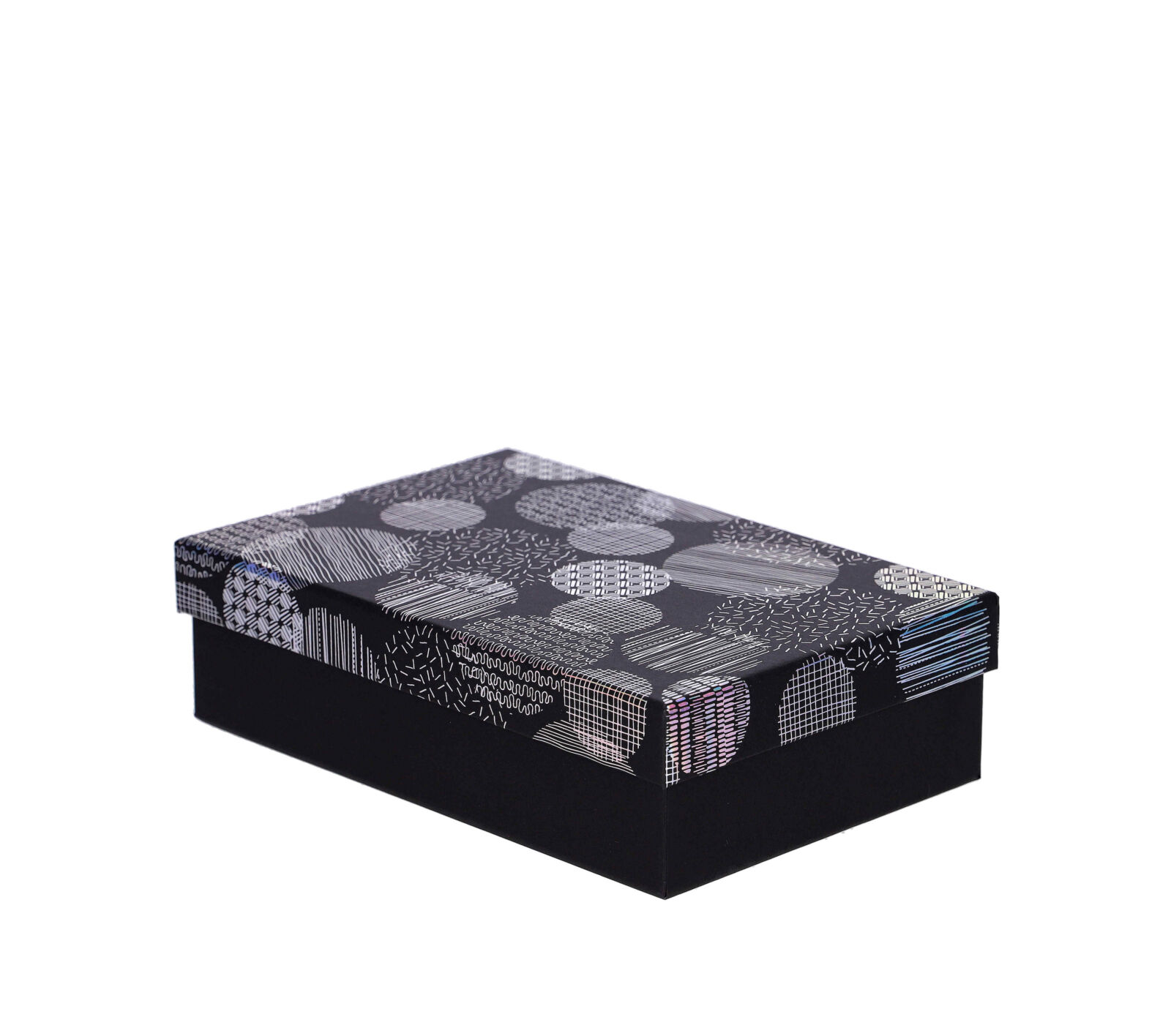 Darilna škatla – krogi, črna, 20 x 13,5 x 5,5 cm