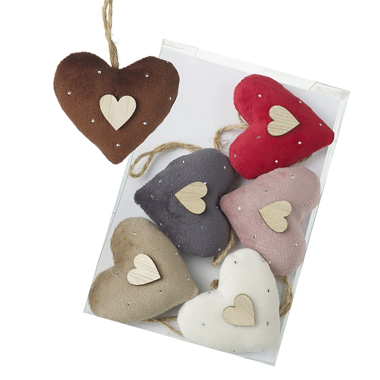 Set šestih žametnih obeskov v obliki srčka za čaroben pridih vsakega prostora.