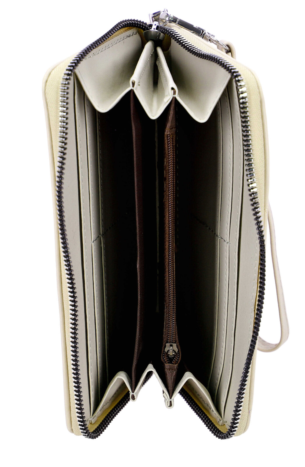 Elegantna bež denarnica, ki združuje stil in praktičnost.