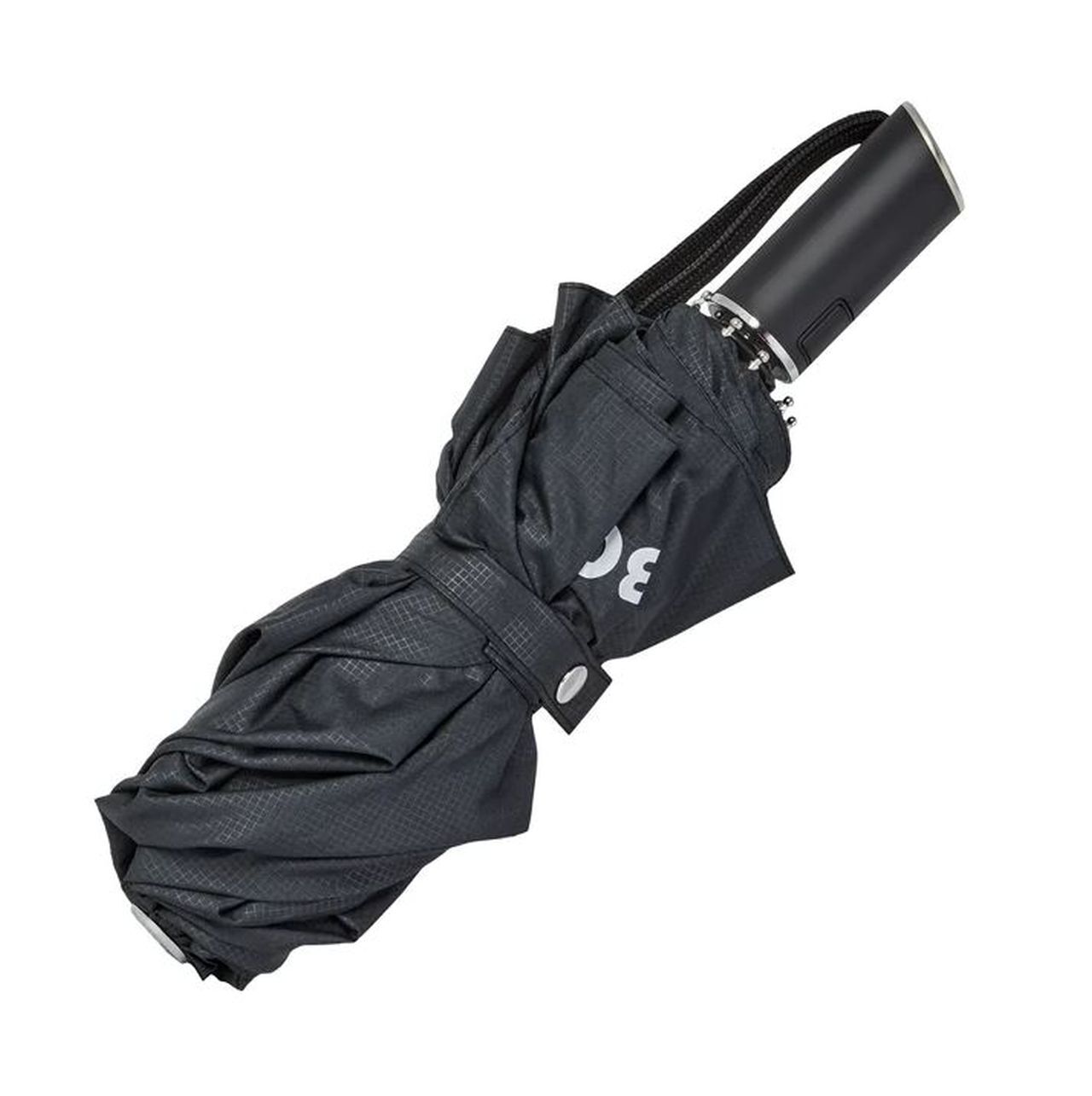 Eleganten črn dežnik Hugo Boss za brezskrbne deževne dni.