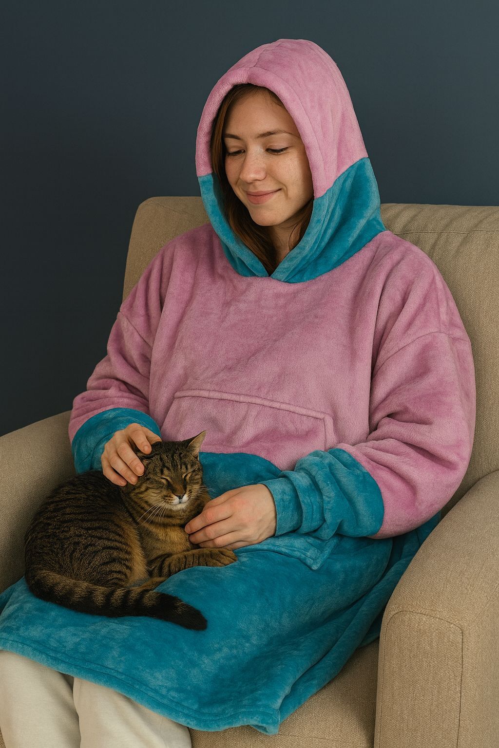 Hoodie odeja z nogavicami MIAU - modro/roza