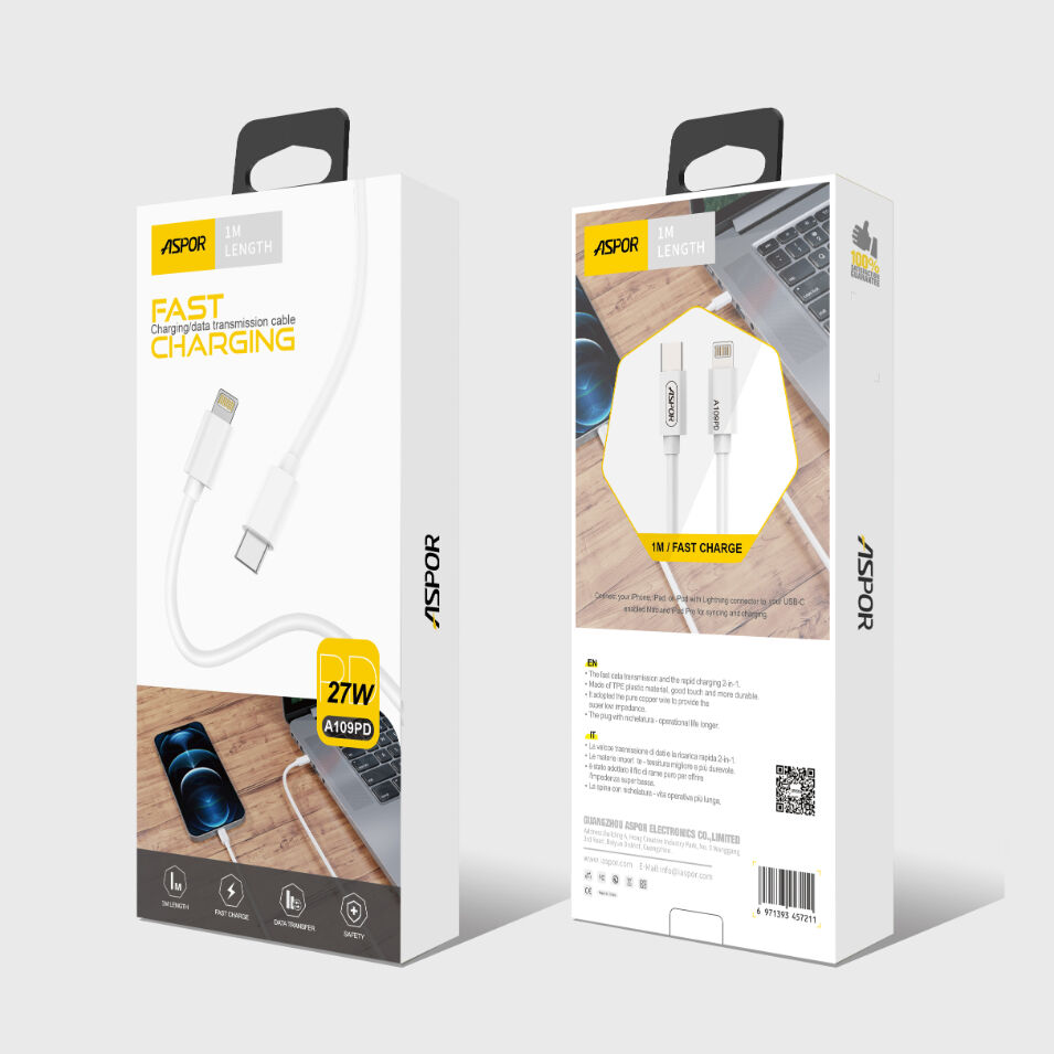 Kabel polnilni ASPOR TYPE-C/Lightning – 27W, 1 m, bela