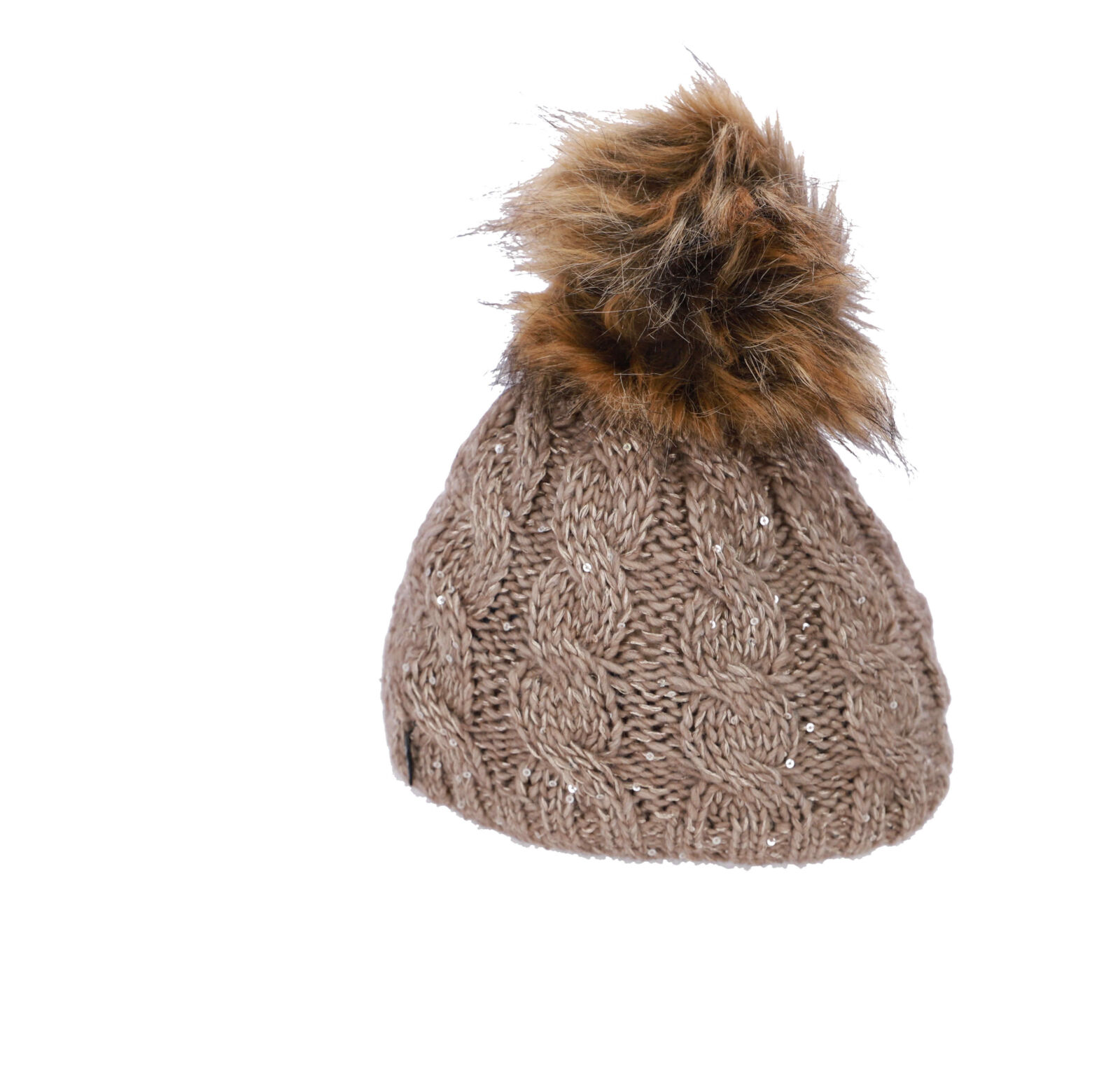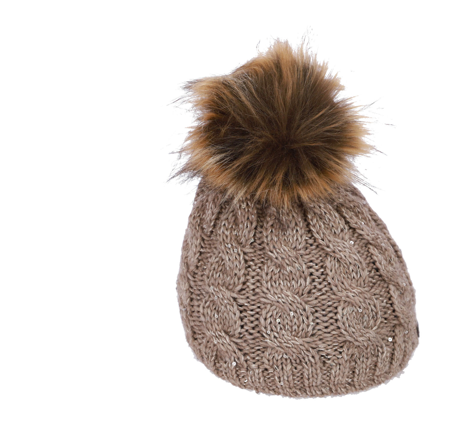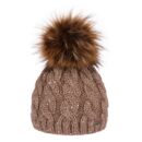 Udobna in topla bež kapa s cofom za stil in toplino.