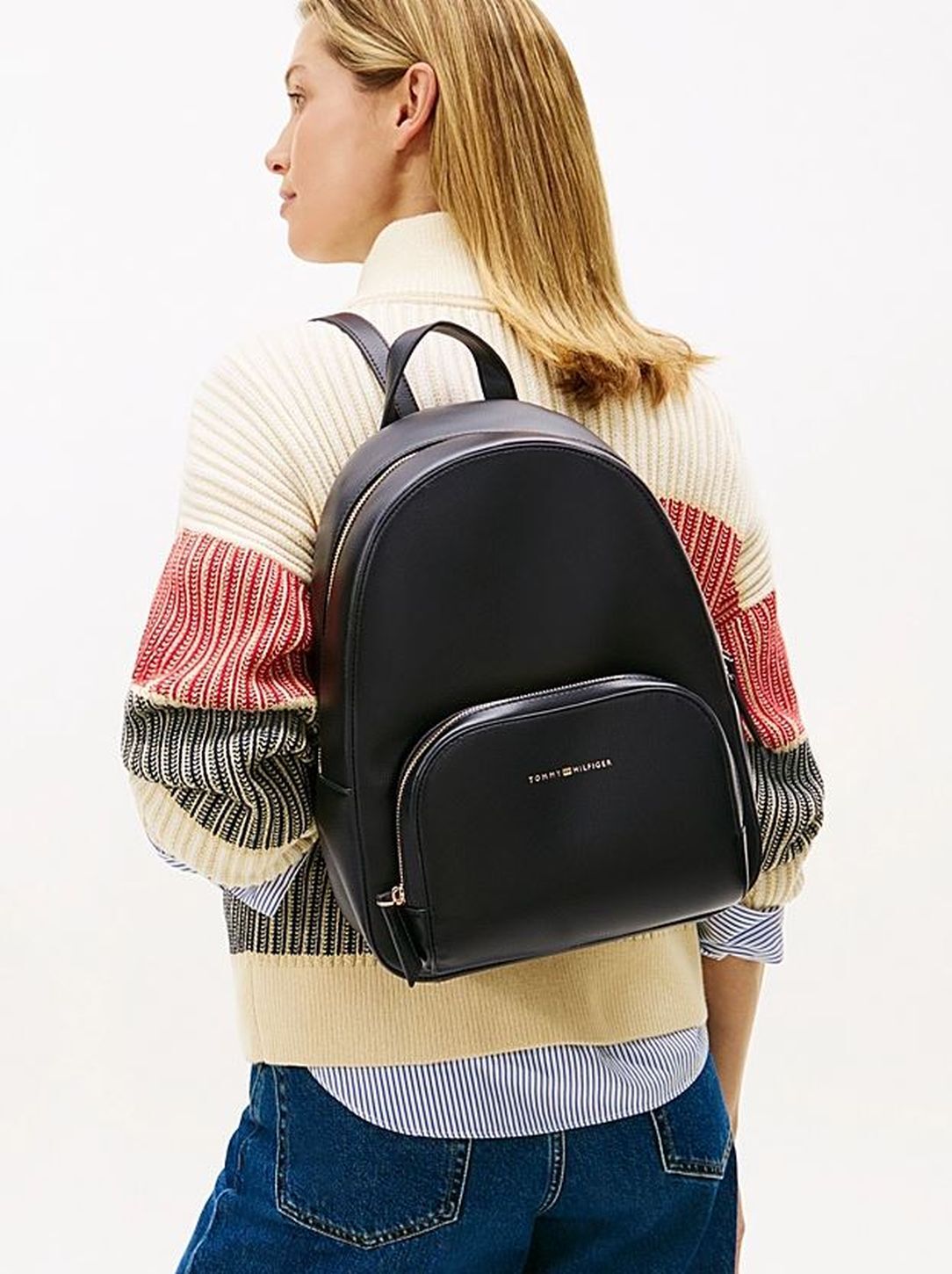 Eleganten črn nahrbtnik iz kolekcije Tommy Hilfiger je popoln za sodobne ženske, ki iščejo praktično in modno rešitev za vsakodnevne potrebe. Odličen je za uporabo v šoli, na delovnem mestu ali pri sproščenih dnevnih izletih.