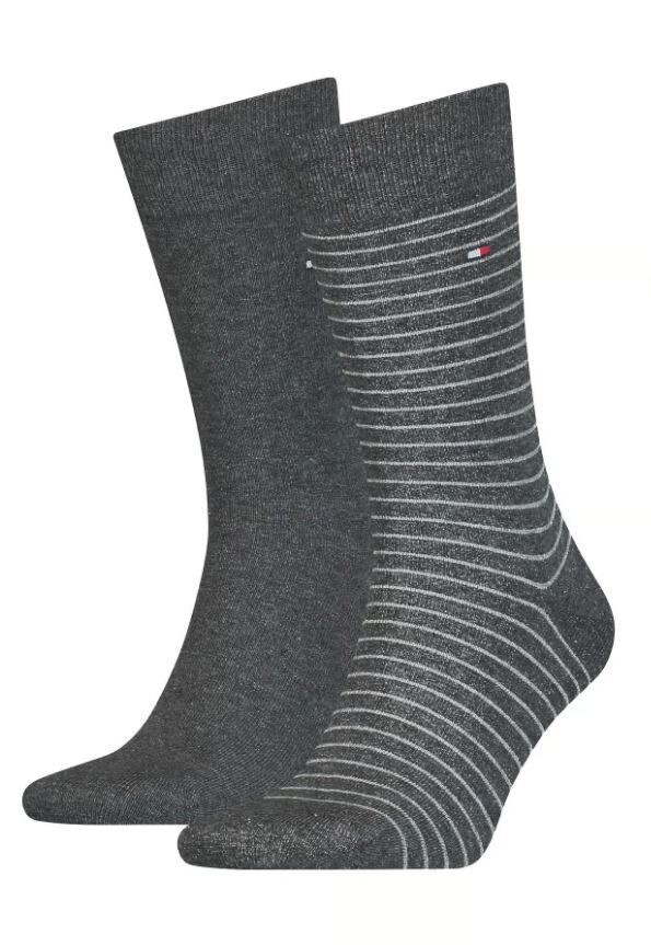 Moške nogavice TOMMY HILFIGER - dolge, temno sive basic, 2 para, 43/46