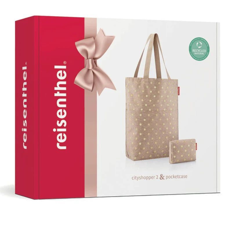 Nakupovalna torba REISENTHEL - metallic dots coffee, set z kozmetično torbico