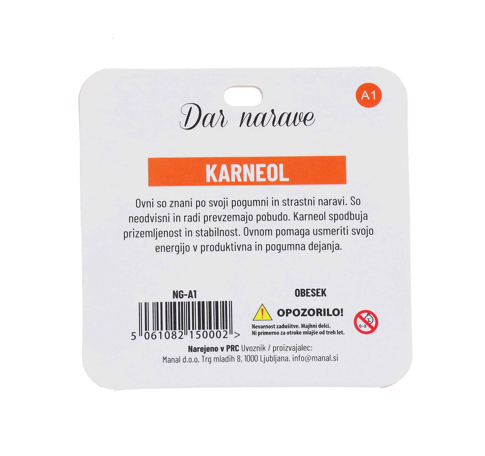 Obesek je izdelan iz naravnega karneola, ki je znan po svoji lepoti in moči. Nosite ga za občutek povezanosti z naravo.
