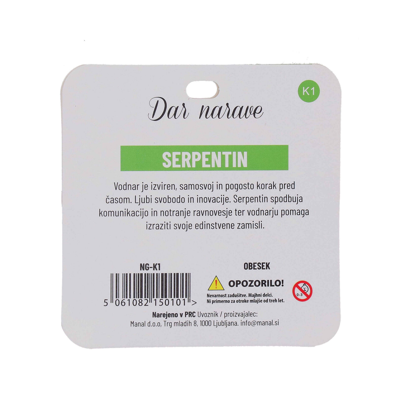 Obesek je iz naravnega serpentina, ki prinaša pozitivno energijo. Nosite ga in občutite povezanost z naravo, kar vam bo prineslo občutek miru in harmonije.