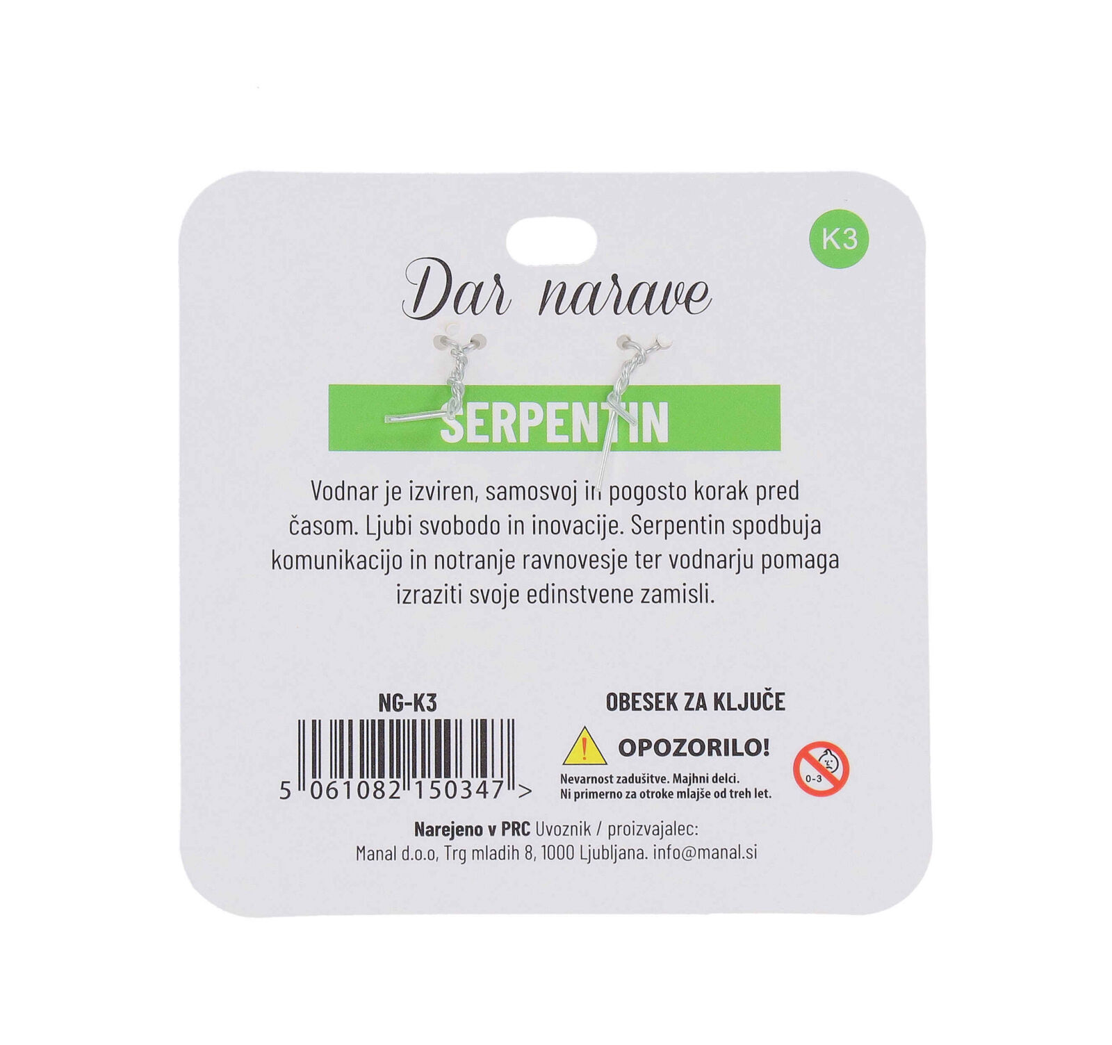 Obesek za ključe Dar Narave je idealen za vse, ki cenijo edinstvene dodatke. Izdelan je iz serpentinskega kamna, ki simbolizira spokojnost in ravnovesje. Primeren je za vsakodnevno uporabo, da vas pomiri v stresnih trenutkih.