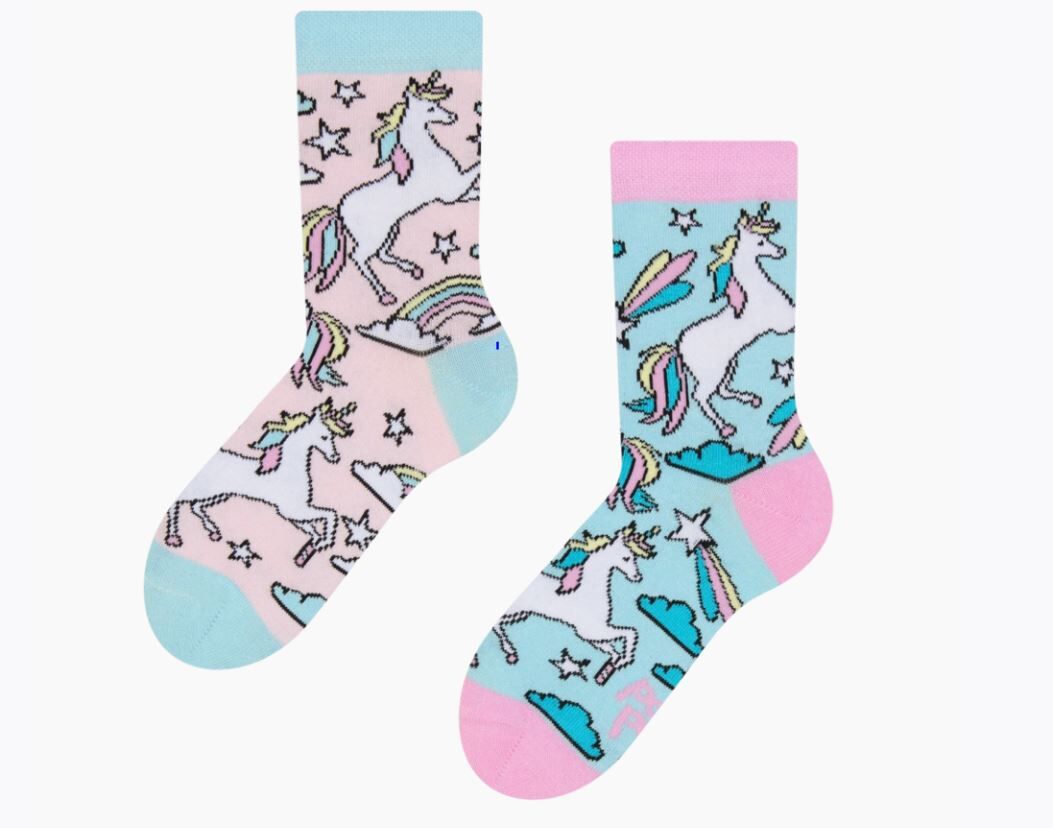 Svetle in zabavne nogavice z mavričnimi samorogi za otroke.