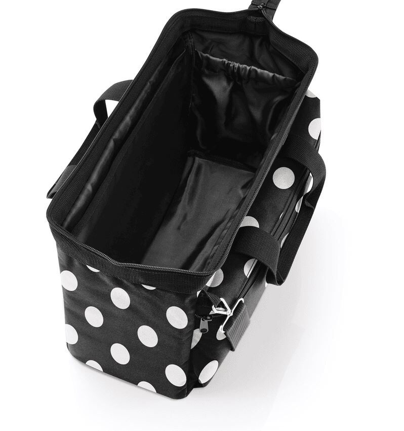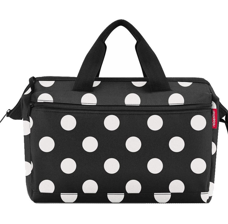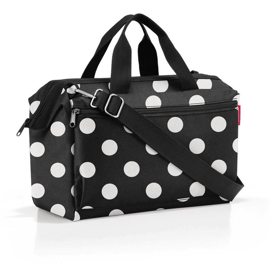 Potovalna torba Reisenthel z belimi pikami je prostorna in elegantna za vse vaše avanture.