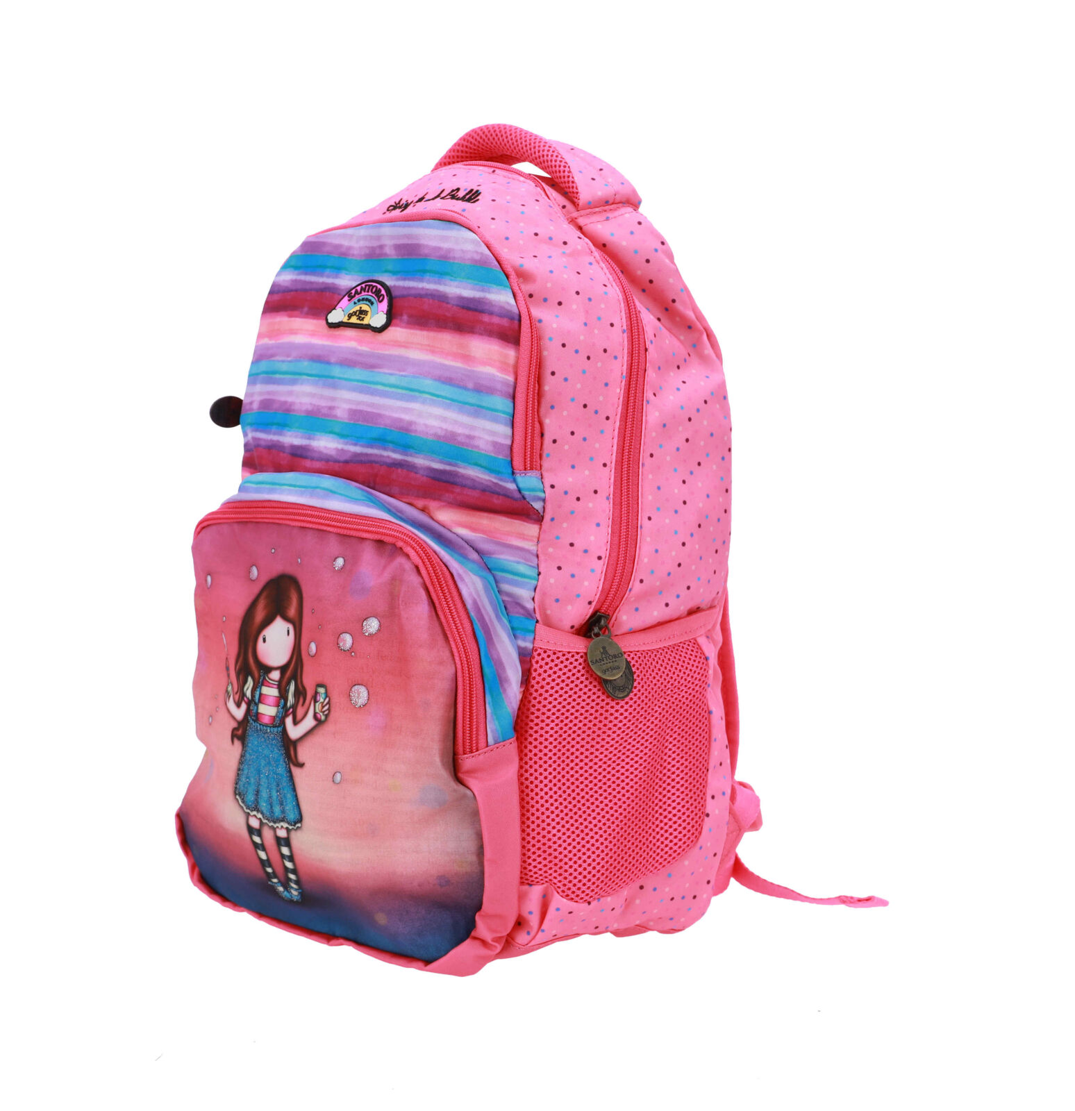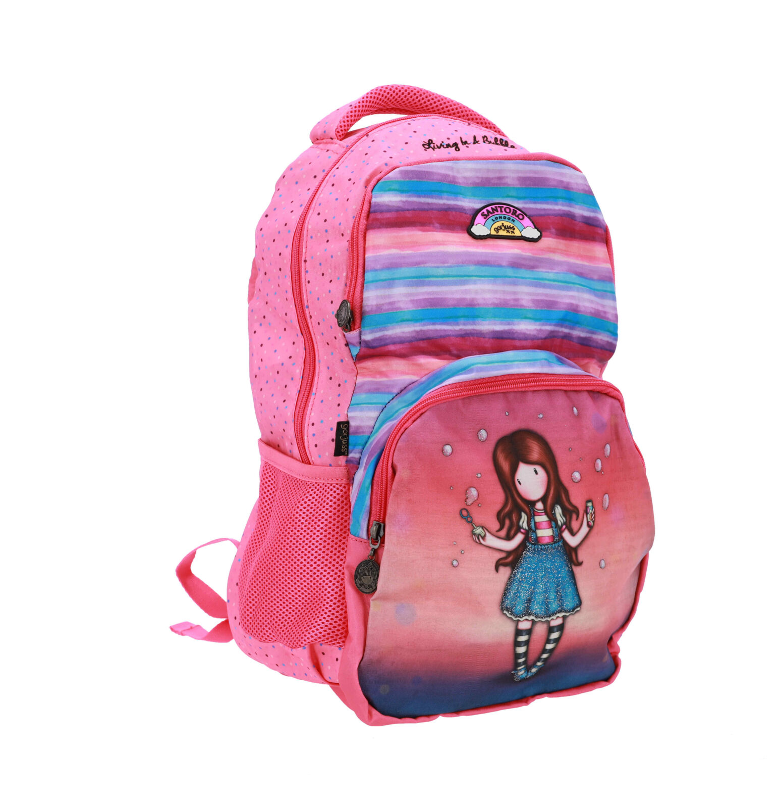 Simpatičen nahrbtnik Gorjuss z motivom deklice v mehurčku, idealen za šolo in prosti čas.