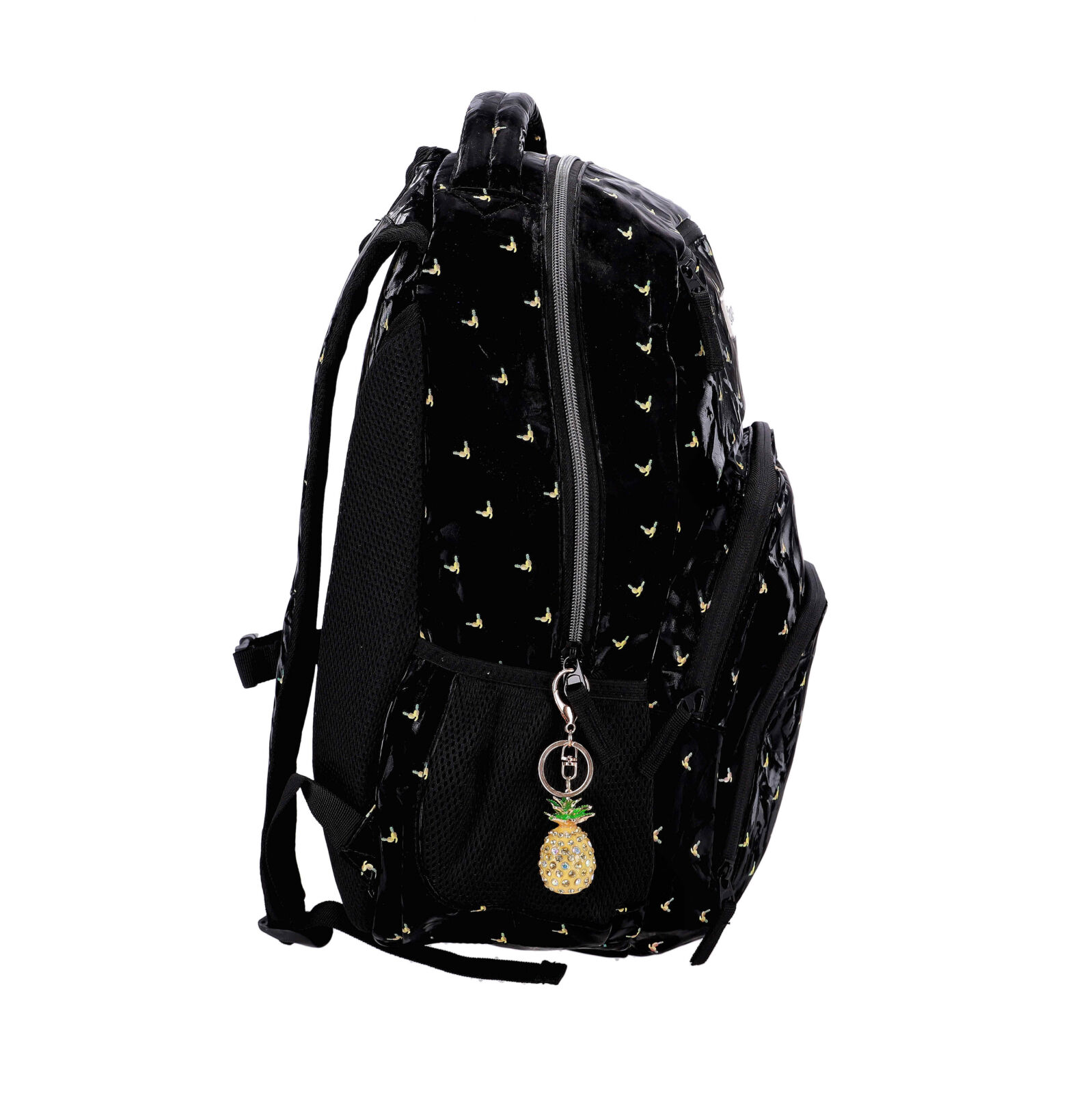 Šolski nahrbtnik z motivom ananasa, prostoren in moden.