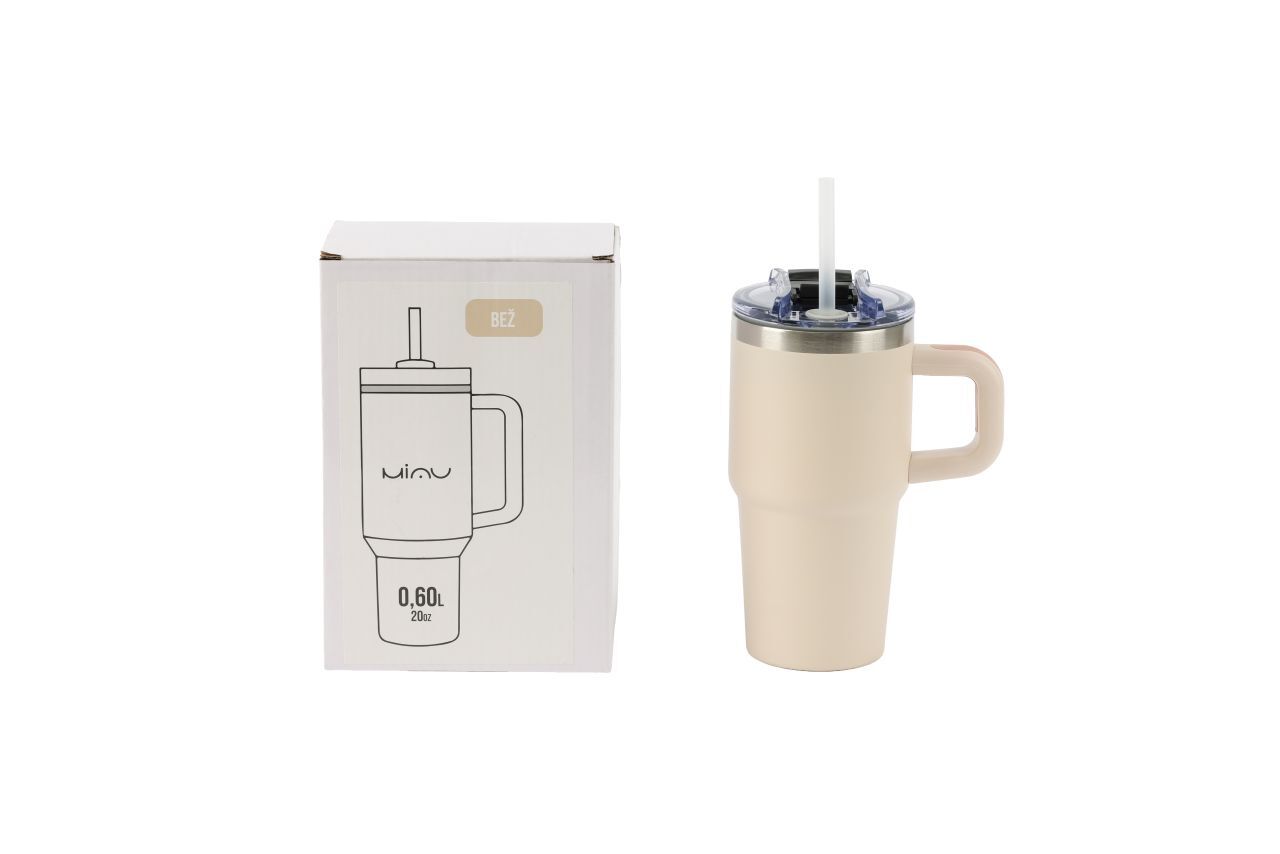 Termovka s slamico MIAU – bež, 600 ml