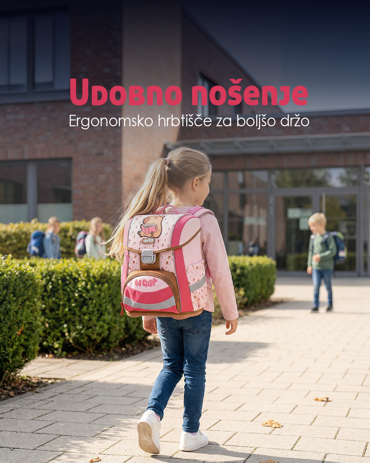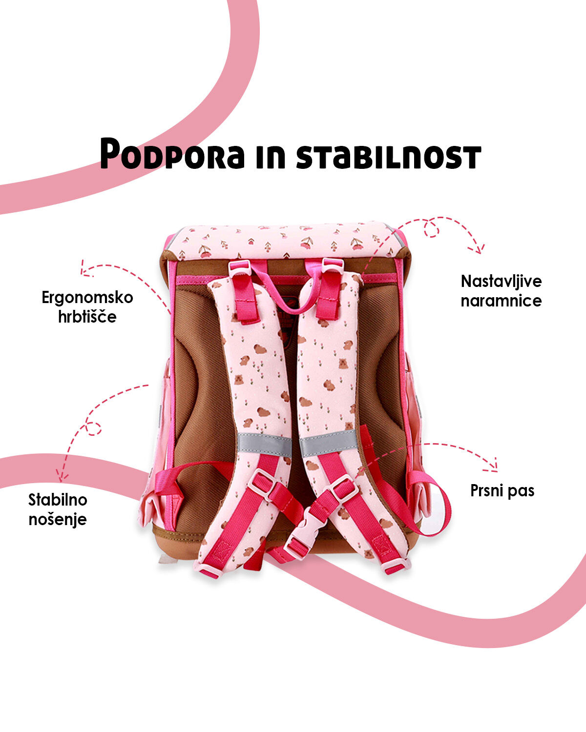 Z udobnimi naramnimi trakovi in ergonomsko obliko, torba zmanjšuje obremenitev na ramenih. Otroci lahko torbo nosijo brez nelagodja, kar jim omogoča, da ostanejo aktivni in brez skrbi skozi ves dan.