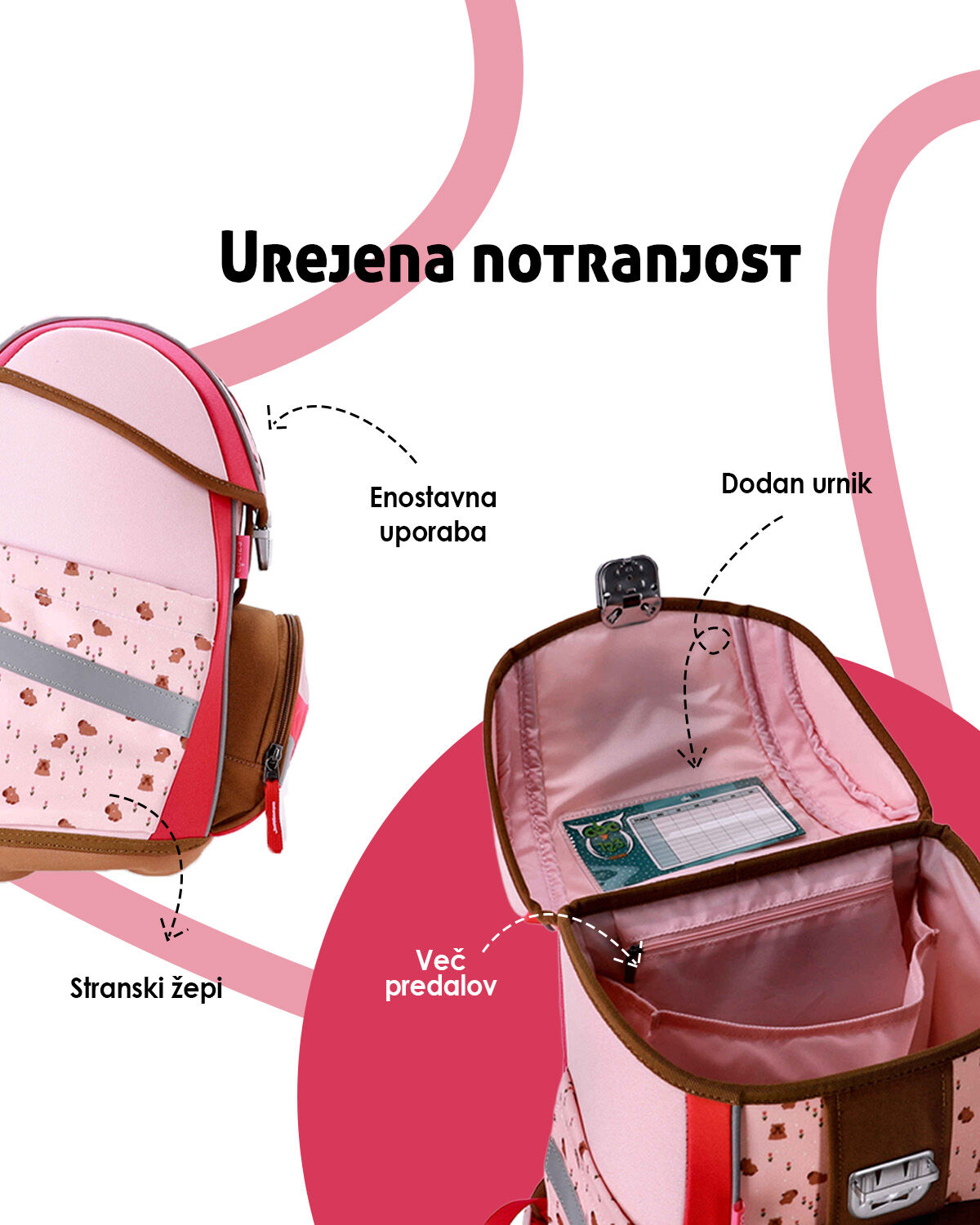 • Prostorna notranjost za vse šolske potrebščine
