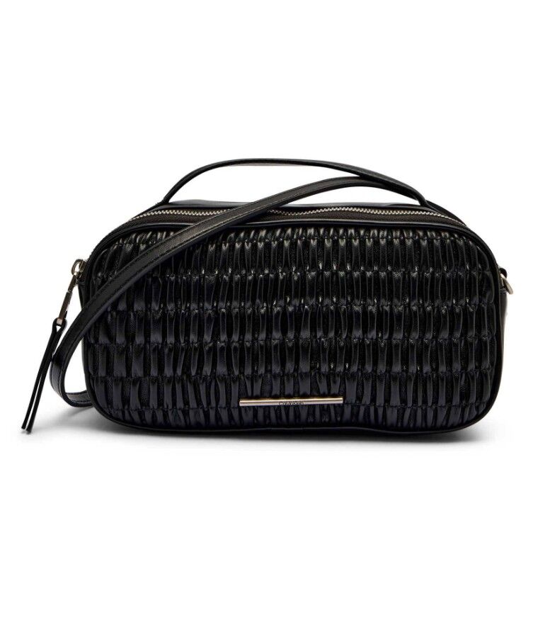 Torbica za čez ramo CALVIN KLEIN Ruched - črna, elegantna, usnjena, ženska