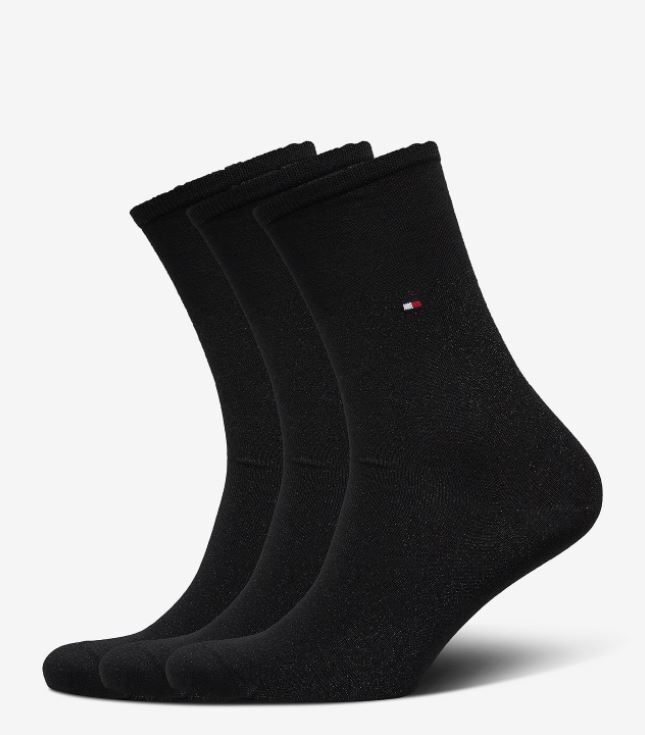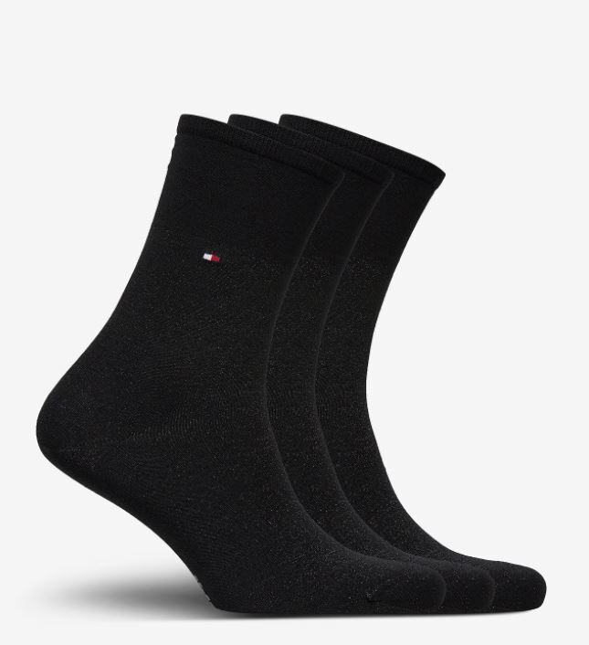 Ženske nogavice TOMMY HILFIGER Sparkle - dolge, črne, 3 pari, darilna embalaža, 35/38